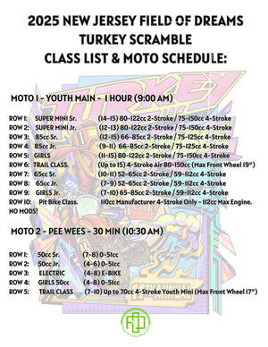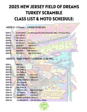 MotoSponder will be used at The 2025 Turkey Scramble. All racers are required to use MotoSponder RFID strips at this race.Riders can purchase an RFID Sticker for $10.